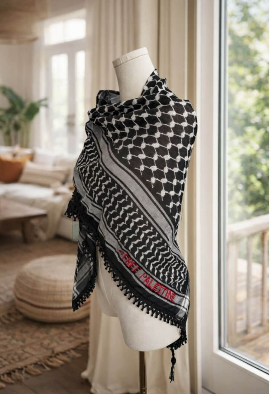 The Keffiyeh — or “Kufiya,” as it’s called in Palestine — remains a powerful symbol of resistance, resilience, and freedom. Traditionally, a Keffiyeh is meticulously handcrafted using a time-honored cross-stitch weaving technique passed down through generations. Made with two layers — the base and the intricate “flower” (وردة) pattern. Today, the Keffiyeh continues to evolve, available in a range of colors and patterns inspired by Palestinian heritage, historic landmarks, and the timeless designs that have come to represent a nation’s enduring spirit.